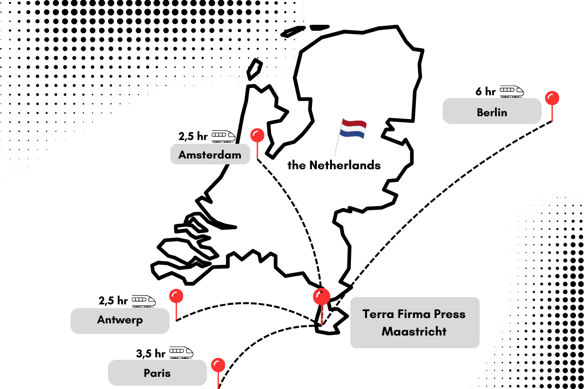 Our residency program is centrally located in Europe. With the train, you can make day-trips or multiday trips to many of the creative hotspots in the Netherlands, Belgium, France and Germany.
